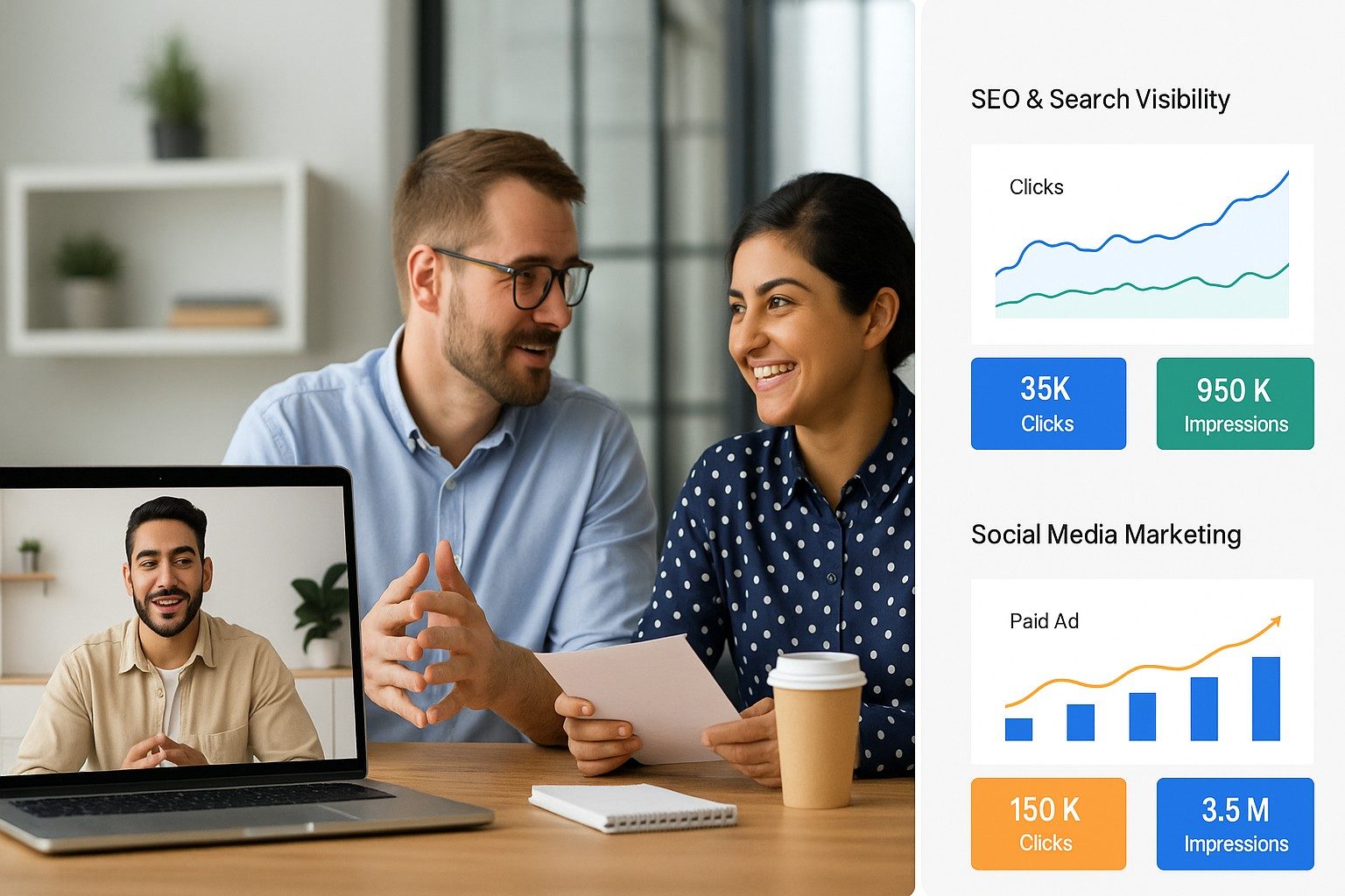 Monthly performance reports with clear KPIs—so you see exactly how marketing drives revenue.